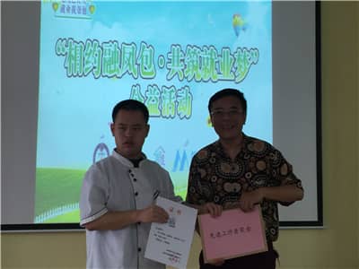 据了解,为了让憨儿们平等参与社会生活,共享社会发展成果,2016年4月9日,深圳狮子会及深圳狮子会华林服务队特别联合深圳市职康残疾人服务中心、深圳市龙凤宝投资有限公司、深圳市简驿投资控股有限公司等单位启动了“乐业鹏城行动-支持憨儿就业”公益项目,通过“社区+爱心企业+慈善组织+服务机构+品牌企业”模式打造公益平台,建立“融凤包”餐饮实体店,支持憨儿就业创业,这一模式有效破解了我国憨儿就业难题。在前不久召开的心智障碍者支持性就业全国试点计划总结会议上,中国残联、中国智协、国际劳工组织等方面领导和专家给予高度评价和充分肯定。