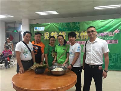 本次慰问,共向职康中心的45位老人及15位残疾朋友们发放了端午的节日水果。他们收到礼物后都十分开心。其中一位94岁高龄的老奶奶让狮友们印象深刻,她站起来向狮友们敬了一个标准的军礼,并主动表演了一个节目。她乐观的态度影响了每一位在场的朋友。大家与老人和残疾朋友们一起唱歌、跳舞、包粽子,仿佛一切都沉醉在爱的海洋中。