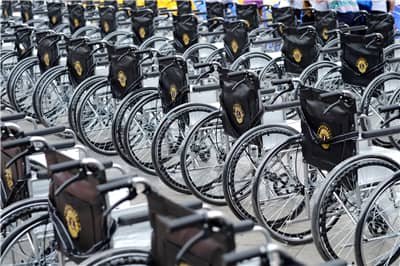 2016年5月15日,广东省英德市全国助残日。深圳狮子会乐善服务队“关爱孤残疾儿童,让爱撒满人间”助残服务活动如火如荼地进行着。本次活动向英德市残疾人联合会捐赠轮椅100台,总价值13万元。