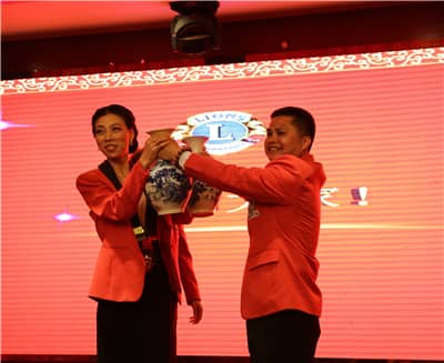 在各位领导狮友的见证下,田文洲狮兄将队长绶带移交给潘加萍狮姐,双方互赠礼物。福永服务队2015-2016年度理事会全体成员也携手走上舞台,向即将结束的狮子年度告别,服务队的各位狮友向他们鼓掌致敬,并送上鲜花表示感谢。