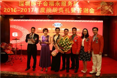 2016年7月16日,深圳狮子会福永服务队换届典礼暨2015-2016年度理事会答谢会在福田区粤庭轩酒店成功举办,深圳狮子会2016-2017年度第一副会长俞潜、第一分区主席瞿彰良、第三分区主席操应旺、第十一分区主席陈珩、第十四分区主席陈秋芬、扶贫助残委员会主席熊珺及执行主席朱亚二、低视力项目委员会主席杜娟、新队发展委员会执行主席曹海红、狮企服务委员会执行主席苏建华共100余人出席典礼。典礼由李慧芳和唐正泉共同主持。