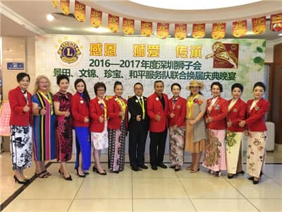 2016年7月16日,艳阳高照,群狮汇萃。深圳狮子会景田、文锦、珍宝、和平服务队联合换届典礼在龙华新区龙泉酒店隆重举行。深圳狮子会2016-2017年度第二副会长田王星、秘书长曾石养、副秘书长李月华、第四会员管理委员会主席郭永勇、第十二分区主席彭道坚主席、狮企服务委员会主席刘全世及理事会团队、狮友、嘉宾共300余人参加典礼.典礼由李建狮兄主持。