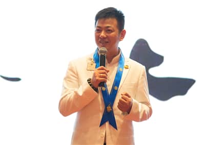 江山服务队第二副队长王强致答谢辞,他感恩各位来宾热心公益,感谢全体狮友莅临支持,在新的年度江山服务队必将以崭新的面貌勇攀新高峰。