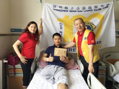 佳望同学很感动,非常感谢深圳狮子会叔叔阿姨们对他的关心和援助。他表示,一定配合医生积极治疗,早日康复,返回学校好好学习,将来回报社会。