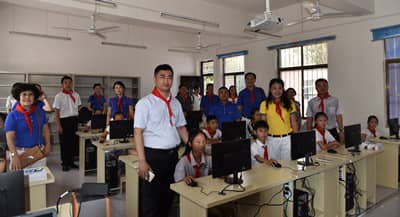 捐赠仪式上,修武县政府领导和教育局领导分别向深圳狮子会和平安银行橙基金赠送锦旗,少先队员给叔叔阿姨们系上久违的红领巾,同时还带来了精彩的文艺汇演。随后,与会领导、嘉宾、狮友参观了电教室和阅览室,指导学生使用电脑,孩子们均踊跃地参与,互动环节,积极思考、争相抢答,其乐融融。