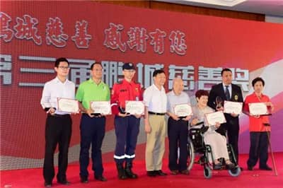 2016年9月5日上午,深圳市首个中华慈善日主题活动暨第三届鹏城慈善奖颁奖典礼在市民中心举行。省委副书记、深圳市委书记马兴瑞等领导,以及第三届鹏城慈善奖获得者等爱心企业家、慈善人士和慈善工作者们参与了本次活动。由共青团福田区委员会、福田区人力资源局、深圳狮子会联合主办的青年驿站(福田)项目在第三届鹏城慈善奖评选活动中荣获“鹏城慈善典范项目”。深圳狮子会会长施建永上台领奖。