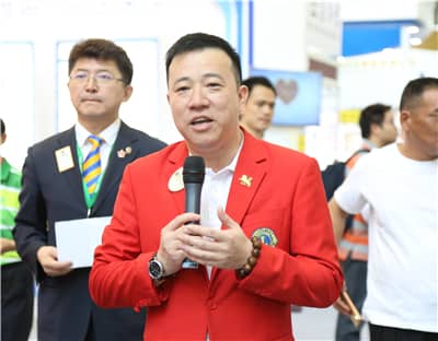 上午10:30,中国狮子联会和深圳狮子会在1号馆的展位上举行了简单而隆重的开幕仪式。中国狮子联会会长尤红,深圳市残联党组书记、理事长人选侯伊莎,中国狮子联会副会长林子钰,中国狮子联会常务理事、中狮基金主席苏泽然,中国狮子联会副秘书长郭克利,中狮公益学院副院长肖兴萍,中狮公益学院教务长蔡力,中国狮子联会服务项目委员会副主席廖满雄,深圳狮子会会长施建永,大会主席、第二副会长田王星,副监事长陈诗君,秘书长曾石养,执行主席、总务长骆劲松,纠察长郑和华,副秘书长张健,第四会员管理委员会主席郭永勇,执行主席、第五分区主席何薪如,执行主席、第六分区主席陈宗及全国各地区的狮友出席活动。中国狮子联会公共关系与宣传委员会主席马宣主持了开幕式。尤红、侯伊莎、施建永分别代表主办单位和承办单位在开幕式上致辞,并与中国狮子联会和深圳狮子会的其他领导狮友一起按动了象征着展馆揭幕的启动球。