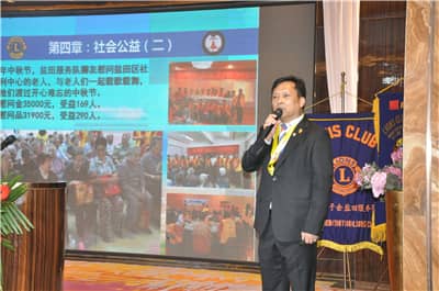 盐田服务队2015-2016年度队长彭道坚作年度工作报告及财务工作报告。他表示,过去一年,盐田服务队在关爱狮友、扶贫助学、社会公益以及狮务交流等方面积极踊跃参加,并大力支持区会工作,大家在这个温暖的大家庭里紧密团结,各项公益服务活动均取得了卓越的成绩。上一年度盐田服务队表现优秀,其中彭道坚、林言骤获得中国狮子联会杰出会员奖,彭道坚还获得中国狮子联会会员发展保留大狮奖。