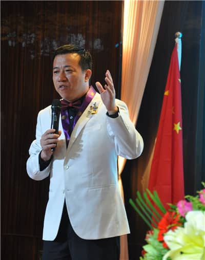 大会主席、盐田服务队2016-2017年度第一副队长吴岗狮兄鸣钟开会,并致欢迎词。