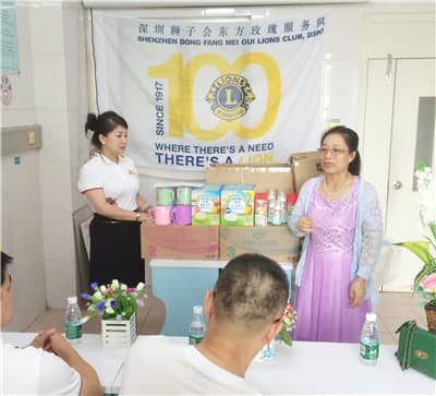 2016年9月13日,深圳狮子会东方玫瑰服务队前往龙岗区龙岗中心医院开展关爱残障儿童活动。本次活动得到狮友们及龙岗福利中心众安康项目中心的大力支持。东方玫瑰服务队2016-2017年度队长林玉啟、第二副队长魏欣新、第三副队长陈晓雪等狮友及准狮友参加活动,为孩子们捐赠日常用品、米糊、奶粉等物资,服务经费5000元。