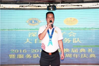 2016年10月15日,深圳狮子会大自然服务队2016-2017年度换届就职典礼暨服务队成立十周年庆典在香港东方神龙号游轮顺利举行。深圳狮子会2016-2017年度第一会员管理委员会主席邓毅,理事、讲师团团长张施俊,监事李赞梅,狮友关爱委员会主席邝红、社区服务委员会执行主席任桂华、队长联谊委员会执行主席刘雅芳、会员保留委员会执行主席齐克林及大自然、华侨城、宾治等服务队80余名领导狮友及家属出席典礼。大会主席由隋星柘担任。