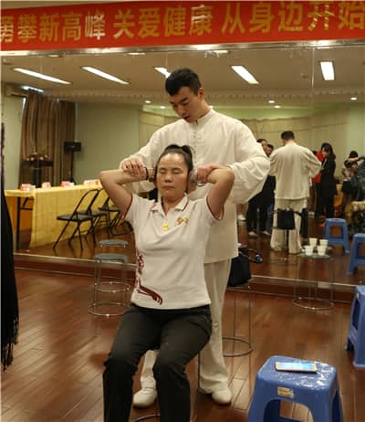 任九龙狮兄向参加活动的狮友讲解了脊椎的构成和脊椎病对于人体健康的危害,并现场以狮友做示范演示。此外,脊正堂还带领参加活动的狮友们跳健康操,为狮友免费做脊椎按摩、推拿,并提供营养汤和糖水。