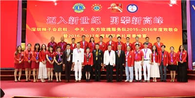 2016年10月16日下午,深圳狮子会启航、中天、东方玫瑰服务队2016-2017年度换届就职典礼在福田区香蜜湖好世界国宴举行。深圳狮子会2016-2017年度会长施建永、第一副会长俞潜、第二副会长田王星、总务长骆劲松、纠察长郑和华、常务副秘书长卢锦上,副秘书长张红象、张健、李月华,会员管理委员会主席邓毅、郭永勇、李锋,分区主席瞿彰良、代继宏、何薪如、陈宗、林小红、张惠清、彭道坚、王道明,资政林言骤及服务队队长等300余人出席典礼。典礼由代继宏、高辰函主持。