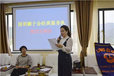 2016年11月7日,深圳狮子会经典服务队(筹)2016-2017年度第四次例会在光明新区锦绣田园顺利召开。深圳狮子会2016-2017年度第三会员管理委员会主席、经典服务队创队队长郑玉宽,第八分区主席林馨悦,新队发展委员会执行主席宁春旭,经典服务队第一副队长孙传湘,第二副队长明申清等20人出席会议。会议由张燕利主持。