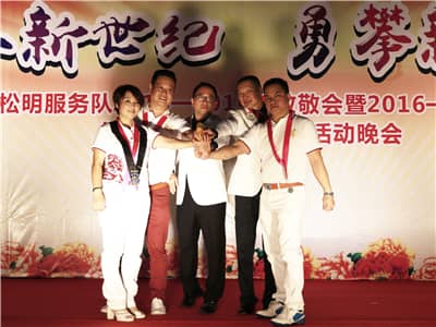 郑卓宇鸣钟开会,介绍与会嘉宾并致欢迎词。朱亚二作2015-2016年度工作总结。他向创队队长文继成及松明服务队的狮友们致谢,并希望在新的一年,松明服务队传承工作风格、深化服务,提升狮务水平。李建琴作2015-2016年度财务报告。表彰环节,区会理事向表现优异的松明服务队狮友颁发感谢状。在现场领导狮友的见证下,朱亚二将队长绶带移交给李宝燕,并互赠礼物。
