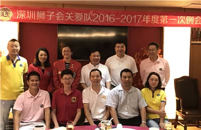 2016年11月6日,深圳狮子会关爱服务队2016-2017年度第一次例会在福田区南番顺鱼庄顺利召开。关爱服务队队长罗平、上届队长姚力、第一副队长王少凯、第二副队长刘志景、秘书黄仪绍、财务魏韬等10余人出席会议。罗平担任大会主席,会议由黄仪绍主持。