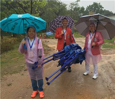 在活动现场突降暴雨,也正是因为这场雨,出现了许多感人的一幕。筹备组周到细心,提前准备好了雨衣和雨伞,提前一天特意搭建了帐篷,并且将弱能人士作为最重要的嘉宾安排在会场前方,狮友还们给大家递上了一杯杯驱寒取暧的热姜茶。虽然场外斜风冷雨,场内却热火朝天。