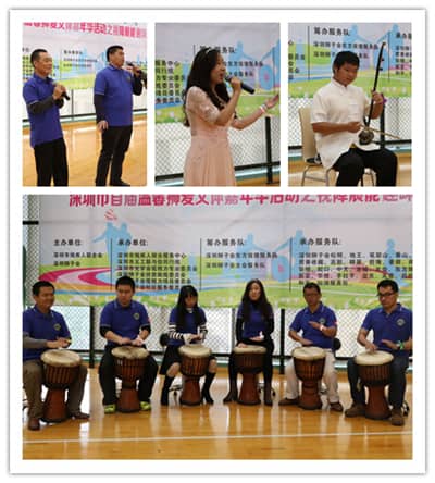 现场,视障人士倾情表演。视障非洲鼓队为大家献上了非洲鼓表演,其铿镪顿挫的鼓声、时而激进时而舒缓的节奏和洋溢在队员脸上的笑容让全场为之震撼;周华英朋友演唱了《我用所有报答爱》及《残花》等歌曲,因其间现场音响故障,在无法提供伴奏的前提下,她仍坚持唱完,悠扬的歌声及专业的音乐素养赢得阵阵掌声;邓奇奇朋友表演了《赛马》等二胡演奏,仿佛千军万马奔腾而来······一曲曲动人旋律温暖明净。
