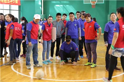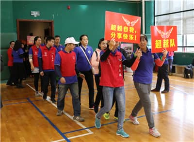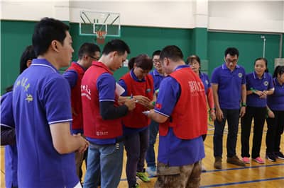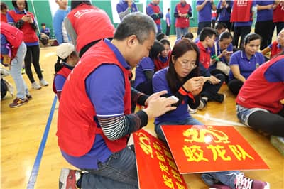 整场运动会采用分组比赛、累计分数的方式进行。义工为视障人士在手腕分别系上不同颜色的丝带,组成勇者队、团结队、超越队、蛟龙队及雄狮队等五个队伍开展比赛。在手机录入、我比你猜、听声击打保龄球、执行命令等环节中,视障人士与现场义工及狮友默契配合、积极互动,充分展现了自己的感统能力及机体协调能力。队员之间互相呐喊助威,团结协作,比赛如火如荼。随后,各小组更是充分发挥想象力、分工配合,利用现场气球及彩带摆设出莲花座、草群、“龙”字等造型,其综合反应能力让人已浑然忘却这是一群视障者的运动会。