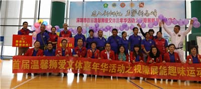 11月27日,由深圳市残疾人联合会、深圳狮子会主办,深圳市残疾人综合服务中心、深圳市义工联与你同行组、深圳市光学会低视力专业委员会,深圳狮子会低视力委员会、扶贫助残委员会、社区服务委员会承办,深圳狮子会东方玫瑰服务队、主会服务队筹办的深圳市首届温馨狮爱文体嘉年华活动之视障展能趣味运动会在深圳市残疾人综合服务中心举行。深圳市残疾人综合服务中心副主任黄群,深圳狮子会2016-2017年度会长施建永、第二副会长田王星、秘书长曾石养、副秘书长张健、第二分区主席代继宏,低视力项目委员会主席杜娟、扶贫助残委员会主席熊珺等领导狮友,市义工联与你同行组义工及45名视障朋友等近100人出席活动。