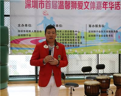 施建永会长在致辞中向远道而来的视障人士及大力支持本次活动的单位及服务队表示衷心的感谢。他表示,温馨狮爱文体嘉年华系列活动致力于为视障等残疾人朋友提供自我展示的平台。视障人士虽然视力不好,但在听声辨位、空间概念等很多方面都是超于常人的,希望在本次活动中,视障人士都能大展才能,度过温馨而愉快的一天。