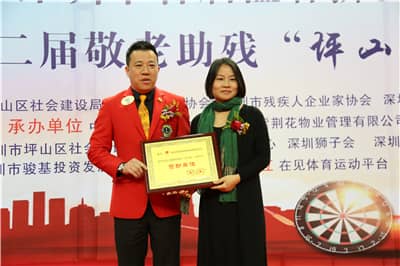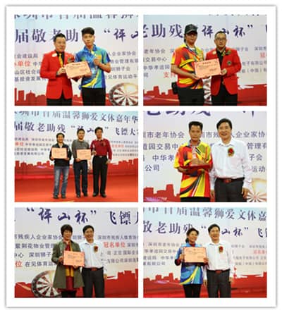 12月4日,深圳市首届温馨狮爱文体嘉年华系列活动闭幕式暨2016年第二届敬老助残“坪山杯”飞镖大赛颁奖仪式在深圳市坪山体育馆举行。深圳狮子会2016-2017年度会长施建永、秘书长曾石养、第五分区主席何薪如、扶贫助残委员会主席熊珺,深圳市残疾人企业家协会会长毛卫平,执行会长赵万新、卢仲元,深圳市飞镖协会秘书长黄革、深圳舒魅秀科技有限公司总经理杨秀强及各承办单位、承办服务队代表、残疾人朋友、老年人朋友等近200人出席活动。