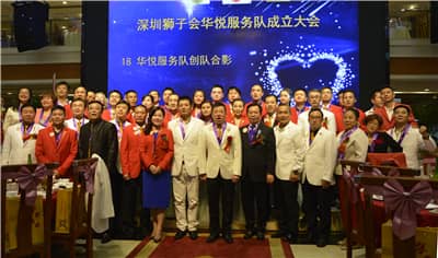 2016年11月18日,深圳狮子会华悦服务队成立大会在华强北喜荟酒店内顺利召开。中国狮子联会常务理事苏泽然,深圳狮子会2016-2017年度会长施建永、第一副会长俞潜、第二副会长田王星、秘书长曾石养、纠察长郑和华,副秘书长张红象,会员管理委员会主席翁华、郑玉宽、郭永勇、李锋,分区主席代继宏、何薪如、陈宗、林小红、张惠清、彭道坚、雷高清、陈秋芬、王道明,理事、讲师团团长张施俊等领导狮友共200余人出席会议。大会由代继宏、孟春主持。