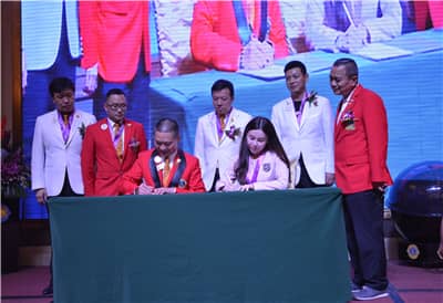 经典服务队的狮友们在创队队长郑玉宽的带领下,举行入会承诺仪式。施建永会长向郑玉宽队长授经典服务队队旗、颁发绶带和权杖。这象征着狮子会的又一支新生力量正式诞生了。