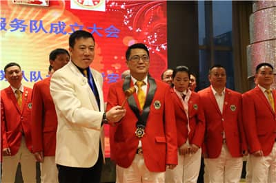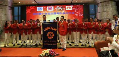 欢迎仪式后,宝庆服务队所有狮友在陈孝安队长的带领下,庄严举行入会承诺,并接受施建永会长授牌、授证、授旗,标志着这支充满活力、富有正能量和爱心的队伍正式诞生!