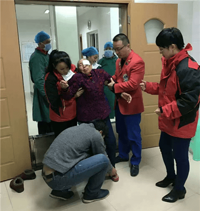 7日早上,11位狮友和医生一起来到医院,为患有白内障的乡亲们换衣服、登记、排号、引导到手术室外进行术前滴药等准备工作,所有的工作都有序高效地进行着,狮友们细心地将每一位患者送入手术室,然后将每一位患者送回到家属身边。
