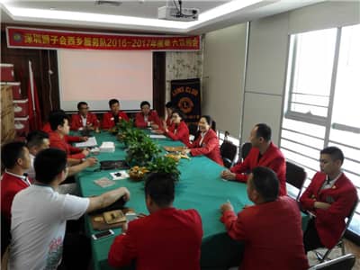2016年12月22日,深圳狮子会西乡服务队2016-2017年度第六次例会在深圳市泽银资产管理有限公司会议室顺利召开。深圳狮子会前会长吴晓明,2016-2017年度新队发展委员会执行主席曹海红、狮子林项目委员会执行主席陈俊东,西乡服务队队长林庆龙、上届队长刘波、第一副队长邝韶峰、第二副队长温绍楚、第三副队长谢膺廉、前队长李小桃等18人出席会议。会议由李小桃主持。