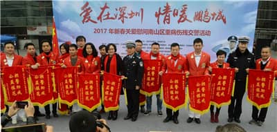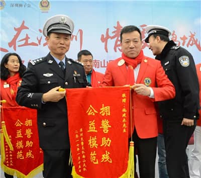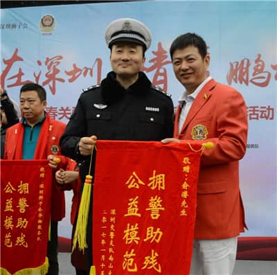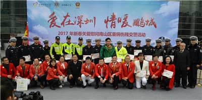 1月15日下午,第十四届深圳关爱行动组委会重点项目之“2017交警关爱工程”春节慰问活动在南山区南山文体中心广场举办。本活动由深圳狮子会、深圳市关爱办主办,深圳狮子会新爱足球、主会、大同、商知联、天恩、启航、华湘、凤凰、宝庆服务队承办,深圳狮子会蛇口、起程、地王、香山、泰安、文锦服务队协办。活动向25位因公伤病、因公致残的交警代表每人送上慰问金5000元及新春年货,服务经费15万元,并向他们致以节日的问候和美好的祝愿。