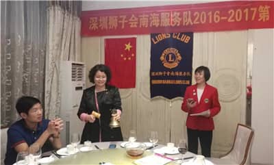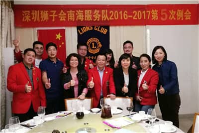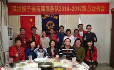 2017年2月20日,深圳狮子会南海服务队2016-2017年度第五次例会在南山区钱塘潮餐厅106房召开。深圳狮子会2016-2017年度第三分区主席操应旺,南海服务队队长何苑珍、第一副队长马峰、第二副队长李峰洲、第三副队长梁佩霖、秘书徐军、财务刘婕、总务雷四成、纠察陈志祥,理事杨军红、操华军,黄巨玲、张万春、李勇、廖宗海、韩梅梅,嘉宾曾文宇等17人出席会议。会议由刘婕主持。