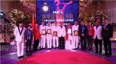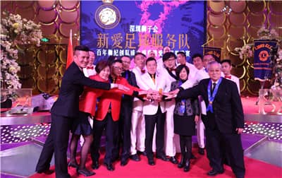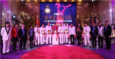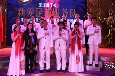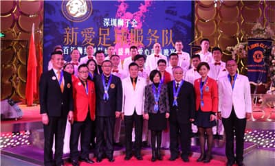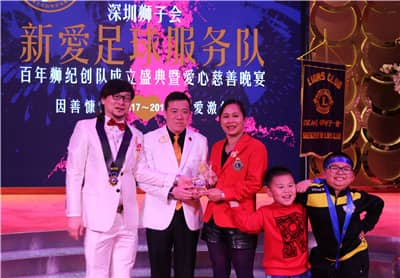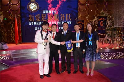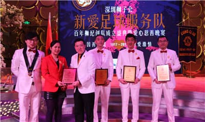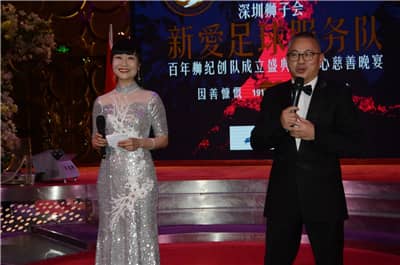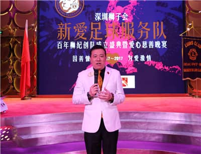 2017年3月11日晚上,深圳狮子会新爱足球服务队成立典礼暨慈善晚宴在福田区平安大酒店五楼唐宫彩德城宴会大厅顺利举行。深圳狮子会2016-2017年度会长施建永,前会长郑德刚、戴同鑫,副监事长陈诗君,秘书长曾石养,财务长马敏,总务长骆劲松,纠察长郑和华,常务副秘书长卢锦上,副秘书长张红象、张健、李月华,会员管理委员会主席邓毅、郑玉宽、郭永勇、李锋,分区主席代继宏、文淑娴、张惠清、陈珩、彭道坚、高凌、王道明,理事张施俊,各委员会主席及各服务队领导狮友等到场支持。中国狮子联会海南会员管理委员会纠察长王天锋,第三分区主席、海狮足球俱乐部主席李晓峰,海狮足球俱乐部第一副主席王世孟、海狮足球俱乐部理事罗婉瑜,中国狮子联会沈阳会员管理委员会年会委员会主席周仙仙等领导狮友也不远千里赶来恭贺。前中国足协副主席、前广东体育局局长董良田,南山交警大队政委杨绍鹏,前中国足球队队长、深圳人人足球俱乐部领队朱波指导,梅县强民体育会会长古向明,前辽宁足球队主力、果辉足球俱乐部创始人、深狮足球俱乐部教练果辉指导,深圳晚报文教卫部主任蔡志军等足球体育届名宿、社会各界领导及爱心人士200余人出席活动。晚宴由正道服务队李学刚狮兄、香山服务队孟春狮姐主持。