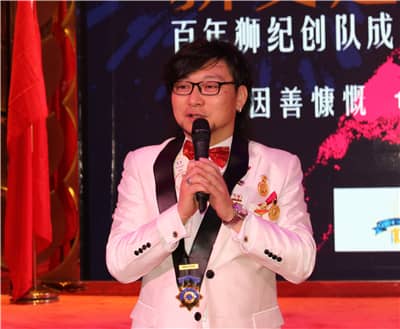 高凌队长发表创队感言,他表示,新爱足球服务队是一支以足球作为服务载体的创新型慈善公益服务新队伍。他们将足球的激情活力融入到公益服务活动中来,并将开展贫困地区青少年足球助学和建立青少年公益足球训练营作为主要服务方向之一。在创队筹备的半年时间里,在讲师团和导狮团的大力支持下,经过了三次筹备会的狮子文化洗礼,联合开展了贵州黔东南龙里凯里爱心助学行、海南澄迈山区建立公益足球训练营、深圳首届名企杯公益慈善足球赛、关爱慰问南山区重病伤残交警及深圳300名环卫工等多项助学、助残关爱服务活动,让各位创队队员在服务活动中增加了对狮子会的认同感、使命感和凝聚力。在讲到创队的辛苦和艰辛时,高队长表示,无论会员发展、组织服务活动还是筹备成立典礼,每一步都充满了汗水甚至是泪水,他的肺腑感言得到了大家理解和鼓励的掌声。