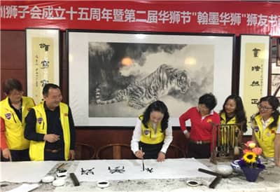 为了庆祝深圳狮子会成立十五周年暨第二届华狮节,同时展示广大狮友的艺术才华,展会期间还特别举行了“翰墨华狮”狮友书画交流笔会。狮友们个个笔酣墨饱、妙笔生花,现场气氛异常热烈。