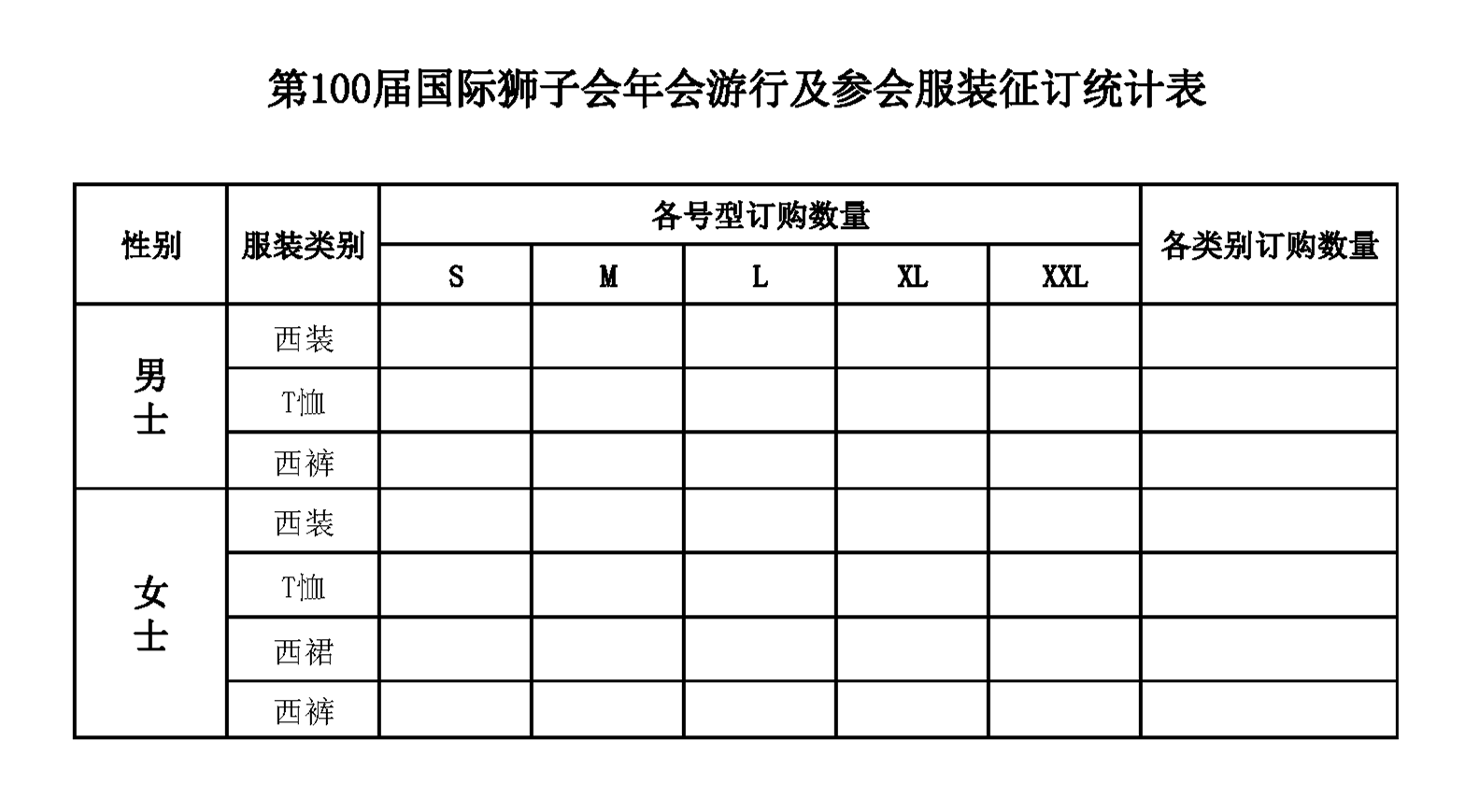 附:第100届国际狮子会年会游行及参会服装征订统计表(可点击下载)