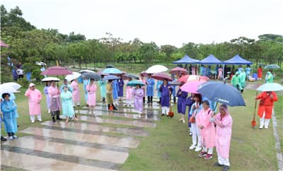 活动当天,狮友们冒着倾盆大雨,风雨兼程,准时抵达凤凰山狮子林参加活动。文淑娴主席和筹备组成员为参加活动的狮友派发雨衣和早餐。