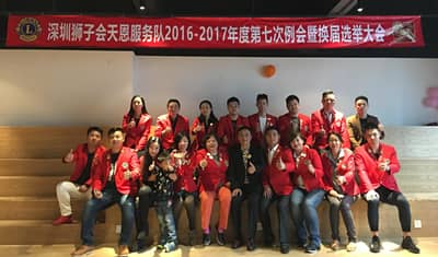 在雄壮的国歌声中,开始了换届选举大会。王爽队长宣读了服务队换届选举的重要事项和要求,邬玉琼主席宣读了天恩服务队2017-2018年度理事竞选名单。李舟、郭亮、彭星、钱正悦分别就队长、第一副队长、第二副队长、第三副队长职位发表竞选演说,并就发展新狮友、认捐华狮奖等事宜进行承诺,四人均以全票通过并当选。