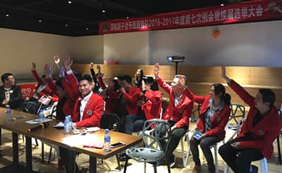 竞选理事的狮友也一一上台发表竞选感言及获选承诺,现场气氛热烈。经过全体狮友以无记名投票方式选举,13位狮友成功当选2017-2018年度天恩服务队理事,他们分别是队长李舟、第一副队长郭亮、第二副队长彭星、第三副队长钱正悦、秘书胡翔、财务洪嘉强、总务刘思思、纠察邬玉琼,理事李军蓓、朱凯、孙丽霞、刘七勇、幸文秋、林莉苹。竞选结束后,张红象副秘书长为天恩服务队的换届选举表达了美好的祝愿和诚挚的问候,并分享了自己的狮路历程,鼓励狮友们多付出、多分享,以快乐积极的心态团结狮友、做好服务。