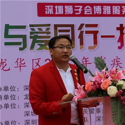 大会主席苏健华为本次活动致欢迎辞,对各位领导狮友、各爱心企业及爱心志愿者的支持与付出表示感谢,向现场残疾人朋友致以节日的问候。她表示,残疾人帮扶作为博雅服务队的重点服务项目,主要在残疾人心理咨询、就业创业指导、集体婚礼举办、残疾人技能培训及特困残障家庭帮扶等五方面开展活动。博雅服务队致力于践行“授人以鱼不如授人以渔”的服务理念,在帮扶残疾人活动中注重残疾人心理咨询及技能培训,为残疾人打造更优质的就业环境。随后,扶贫助残委员会主席熊珺、大会执行主席唐希顺分别致辞,向一直关心、支持残疾人事业的领导及狮友表示衷心的感谢,并向大家介绍全国助残日及残疾人专场招聘会项目,呼吁大家共同帮扶残疾人,保障残疾人权益。
