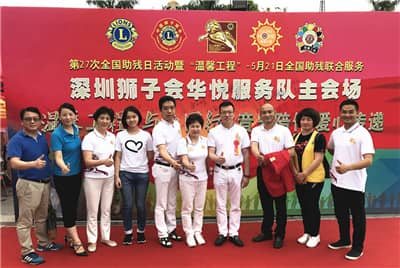 本次活动得到了残联领导及深圳狮子会领导狮友的大力支持。深圳市残联兼职副理事长、深圳大学教授周林刚,深圳市残联康就部主任李伦、南山区沙河街道残联主任刘颜,深圳狮子会2016-2017年度会长施建永、前会长戴同鑫,2017-2018年度候任副监事长廖荣辉,2016-2017年度秘书长曾石养、纠察长郑和华,2017-2018年度候任纠察长邓毅、候任副秘书长李锋、候任第五专区主席聂向东,2016-2017年度分区主席何薪如、林小红、雷高清、王道明,2017-2018年度候任分区主席杜鹏、邬玉琼、黄少芳、黄力生及各服务队狮友、微光乐队成员、企业代表、爱心志愿者、自闭症儿童及家属共300余人参加活动。
