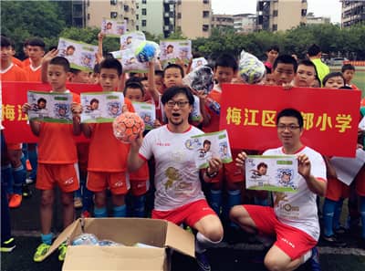 广东明星足球队为来自14所学校的300多名孩子开展足球培训。明星足球队的队员们将孩子们分成14个片区,与孩子们亲切交流、示范动作,带着孩子们一起跑、跳、带、传、顶、射……为孩子们呈上了一堂精彩生动的训练课。