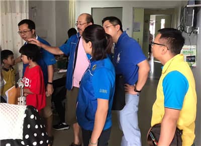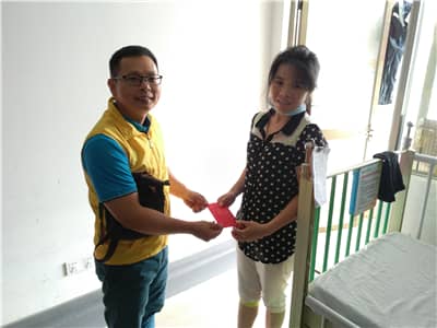 2017年6月25日,深圳狮子会香蜜湖服务队来到深圳市儿童医院探望“地贫”儿童廖某,并为其捐赠了5万元治疗费,服务经费5万元。深圳狮子会香蜜湖服务队2016-2017年度队长钟景维、创队队长陈清峰、前队长陈俊明等狮友参加活动。
