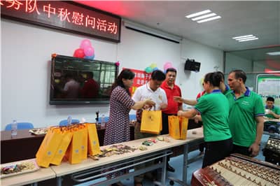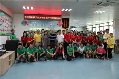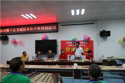 2017年9月27日,深圳狮子会龙城服务队队长郑林玉、第一副队长陈俊彬、第二副队长林计溪、第三副队长范冰清、财务陈玉清、理事郑思珍等狮友、狮友家属共30余人,来到龙岗中心城龙城职康中心慰问残疾人朋友,向80名残疾人每人捐赠1盒月饼,与残疾人朋友共同庆祝国庆及中秋节,服务经费1.0125万元。