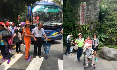 上午,子蒙服务队队长黄昭颐等狮友及残友们准时在平湖职康中心整装待发。活动主席许可可在前期做了大量的准备工作,从统筹到策划,以实际行动践行“四出”精神。很多参与活动的残友行动不便,李彪狮兄二话不说就把一位老太太从旅游大巴上抱下来,将她安放在轮椅上。