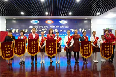 家长代表感恩深圳狮子会对孩子们浓浓的关爱之情。福民小学校长向承办单位赠送锦旗。领导狮友和老师代表共同上台宣读近视防控倡议书。