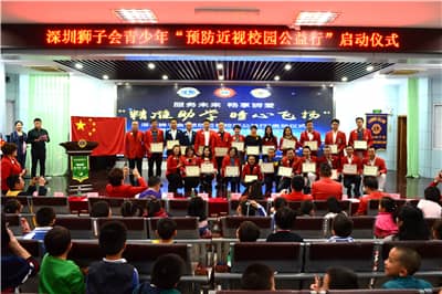 深圳的初冬有一丝凉意,但深圳市福民小学校园却洋溢着春天般的温暖。2017年11月24日,深圳狮子会“预防近视校园公益行”启动仪式暨深圳市福田区福民小学捐赠仪式在这里隆重举行。活动向福民小学捐赠了1000套纠正读写姿势的坐姿宝、40个视力检测灯箱及200盒消除视力疲劳的眼贴,服务经费2万元。本年度,深圳狮子会将由第三专区牵头在深圳市甄选30所学校,为学生开展近视预防活动,预计投入服务经费60万元。