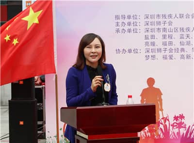 深圳市残联党组书记、理事长侯伊莎女士表示,深圳狮子会扎实推进精准助残服务,将帮扶残疾人工作放在服务的首位,为社区的残友们送去了温暖和关怀。她代表市残联和残疾人朋友感谢深圳狮子会长期以来对残疾人朋友的帮助和支持。她希望全社会共同关注残疾人,给残疾人更多的理解、尊重和帮助,提高残疾人的社会地位,促进残疾人平等参与社会生活。