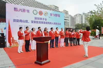 11月30日,为深入贯彻党的十九大精神,发展残疾人事业,倡导“平等、参与、共享”的现代文明社会价值观,深圳狮子会资助南山区、宝安区低保家庭残疾人捐赠活动在南山区文体中心广场举行。活动向141名低保家庭残疾人每人派发1000元慰问金,服务经费14.1万元。